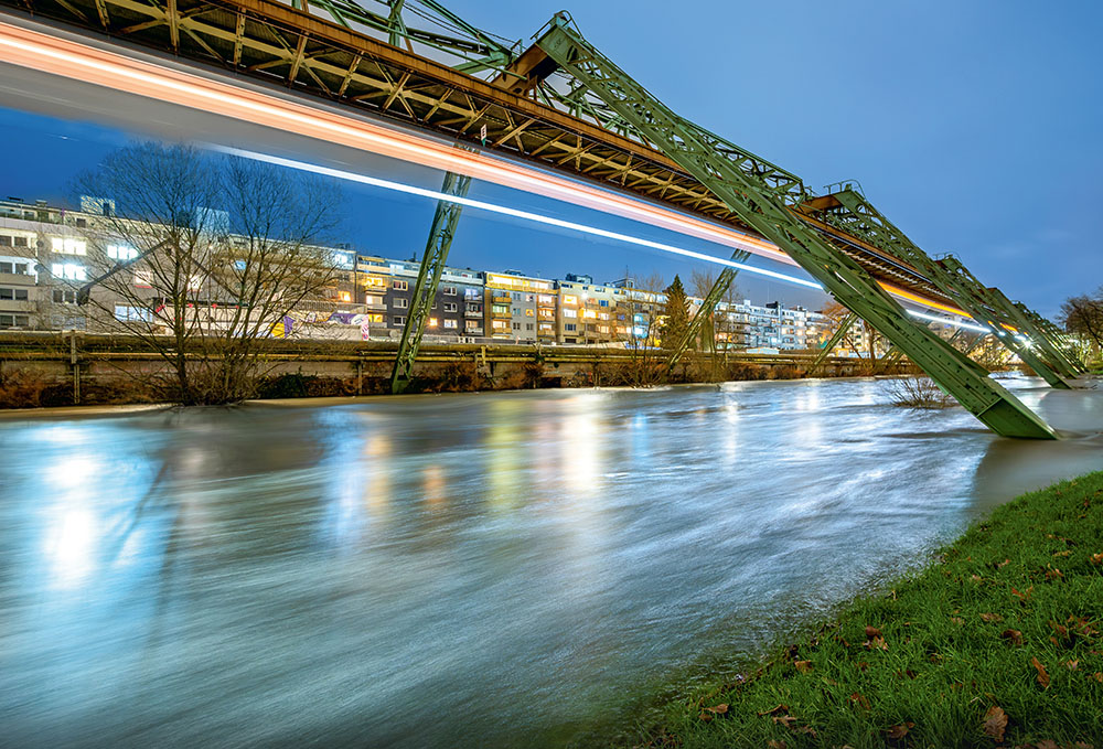 Hochwasser Schwebebahn Blaue Stunde
